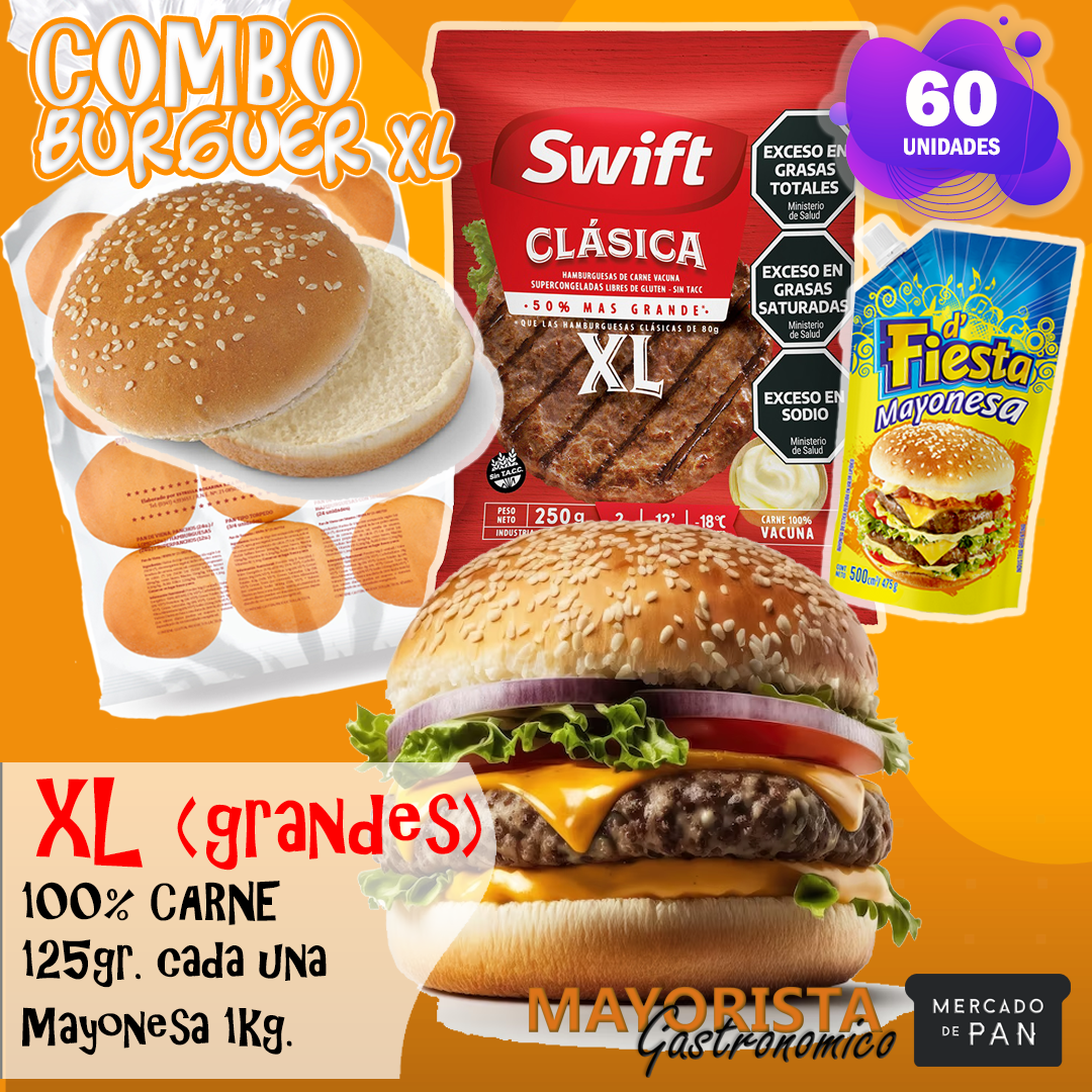COMBO 60 HAMBURGUESAS XL **SWIFT** + PAN + ADEREZO
